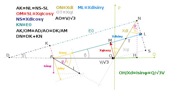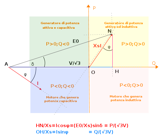 Il punto N, estremo di E0, indica anche la potenza complessa erogata dalla macchina, cioè potenza attiva e reattiva in un piano di riferimento.