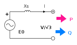 Schematizziamo una fase di macchina sincrona a poli lisci considerata come generatore, trascurando la resistenza.
