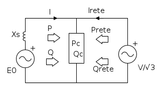 Mentre alimenta lo stesso carico, la macchina è posta in parallelo alla rete, da considerare a potenza infinita, che quindi mantiene costante la tensione di