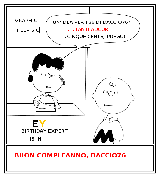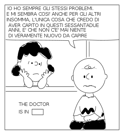 Nota: i personaggi "Peanuts" sono ovviamente copiati dalle vignette del grande maestro Schulz. Io mi sono limitato ad cercare in esse le espressioni per renderli in un certo senso un alter ego dei personaggi di EY