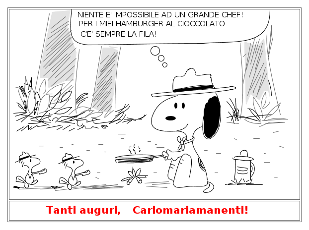 Se le raccolte di vignette Peanuts ed Altro con FidoCadJ vi hanno stancato, beh, stavolta prendetevela con mir che, in quella di Ferragosto dell'anno scorso, scrive questo commento: "admin si avvicina il Ferragosto .... abbiam pronta la nuova serie?... :)".