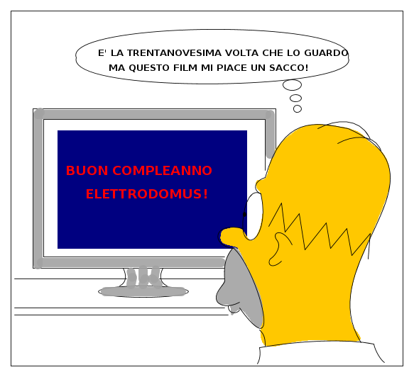 Per i 39 anni di elettrodomus ho invece sfruttato la sua abilità nel disegnare Homer Simpson con FidoCadJ. L'ho ricopiato e vi ho aggiunto un televisore