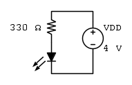 Su un LED rosso cadono circa 1.8 V quand'è acceso, la corrente nel LED sarà