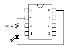 Il pin 8 del PIC12F683 è GND. Sul pin 2 vi sono GP5, T1CKI, OSC1, CLKIN. Useremo il pin 2 per GP5.