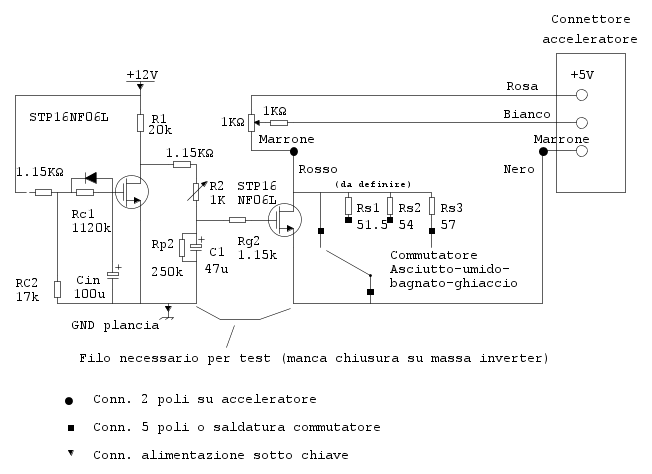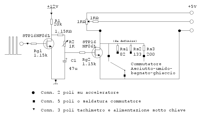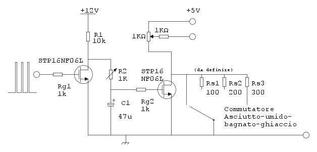 All'aumentare della velocità il 2o FET "apre" e viene inserita Rs in serie al potenziometro acceleratore, simulando un "filo di gas" e riducendo di conseguenza la frenata.