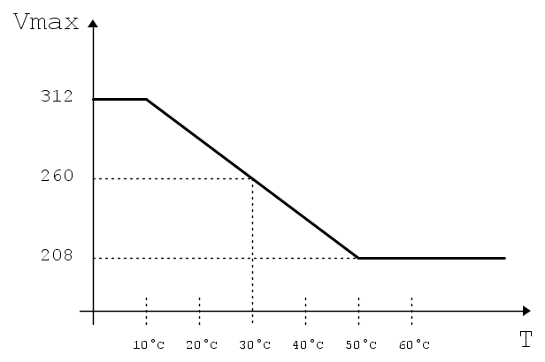La corrente e tensione massima vengono regolate in base alla temperatura letta da appositi sensori, secondo le curve seguenti: