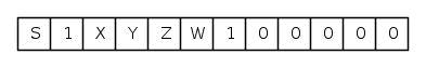 - la configurazione 1XYZW1 è caricata nella parte alta di in un registro a 12 bit con i bit meno significativi settati (o meglio dire resettati) tutti a 0. Il bit più significativo è quello del segno: