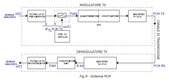 Vediamo quindi come è realizzato lo schema a blocchi del modulatore-demodulatore PCM: