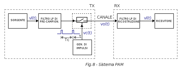 Vediamo allora lo schema a blocchi di massima rappresentativo di un sistema di trasmissione PAM: