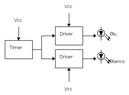 Vorrei realizzare un sistema d'illuminazione per un piccolo acquario, impiegando due gruppi di LED, uno bianco e l'altro blu (max 10 W per gruppo).