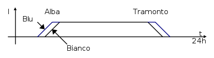 Per farmi capire meglio, ho graficato il tutto rappresentando sull'asse delle ordinate l'intensità luminosa e sulle ascisse il tempo (24 h).