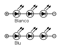 Pensavo di costituire i due gruppi con tre led ciascuno, collegati in serie. Ciascun led è da circa 3 W, con una tensione diretta di 3,5 V ed una corrente di 700 mA.