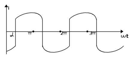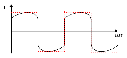 Per fare questo trasliamo l'onda quadra di corrente che risulta evidentemente antisimmetrica rispetto all'origine e ricaviamo questa forma d'onda: