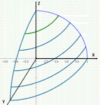 La posizione di un generico punto sul piano del disegno (XZ) è allora determinata dalle due coordinate x e z, "corrette" per tener conto della terza (y), cioè [Formula]. I valori più usati per sono 30° e 45°, a cui corrispndono i coefficienti moltiplicatori di y [Formula] e rispettivamente [Formula]
