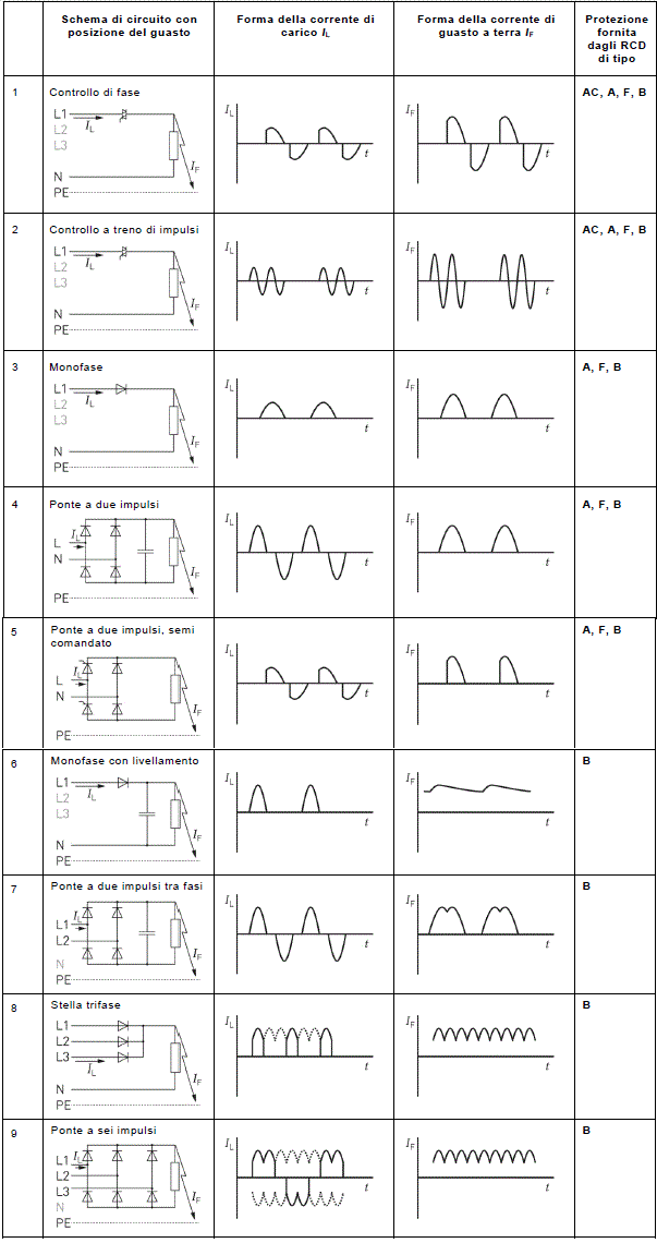 - correnti differenziali unidirezionale pulsanti raddrizzate derivante da due o più fasi