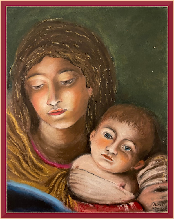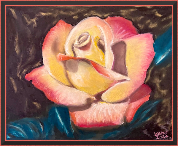 Recentemente ho acquistato dei pastelli ad olio. Non ho studiato molto il modo di usarli per cui improvviso, osservo quel che mi viene, ed alla fine lo accetto anche pur sapendo le difficoltà che ho incontrato e non ho saputo superare. Ma forse, penso, basta non farle presenti.