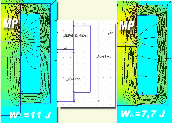 Succede ad esempio inserendo un magnete permanente (Neodimio-Ferro-Boro) e togliendo l' avvolgimento. L'energia magnetica totale passa da 11 J a 7,7 J.