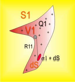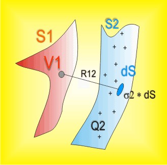 mentre per una distribuzione superficiale σ, funzione dei punti della superficie, assimilando un'areola dS ad una carica pari a