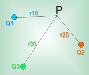 deriva dal fatto che il potenziale in un punto dovuto a più cariche puntiformi è dato dalla somma dei potenziali prodotti in quel punto dalle singole cariche, una conseguenza della linearità dell'equazione di Laplace. Quindi, ad esempio, il potenziale nel punto P dovuto alle tre cariche di figura