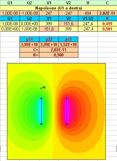 Quindi alternativamente è imposta la carica positiva di 10 nC ad una armatura mentre l'altra è scarica per determinare i coefficienti di potenziale.