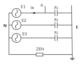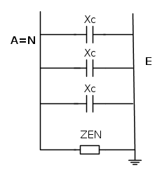 Le tre reattanze capacitive sono in parallelo all'impedenza di messa a terra del neutro. Quindi