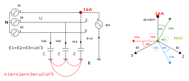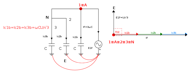 ![{{\dot I}_F} = \frac{{{{\dot E}_1}}}{{{{\dot Z}_F} - {\text{j}}\frac{{{X_C}}}{3}}} = {\dot E_1}\frac{{{\text{j}}3\omega C}}{{1 + {\text{j}}{{\dot Z}_F}3\omega C}} \quad [7]](/mediawiki/images/math/e/4/d/e4db3f7211f141b7d53c339c84ca29f1.png)