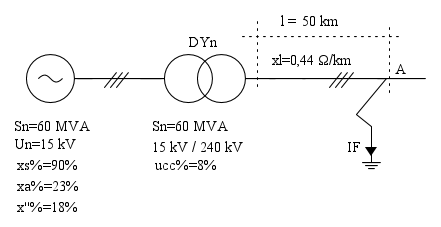 Il calcolo di IF può essere sviluppato in vari modi. Per esercizio lo affronteremo dapprima con il metodo del generatore equivalente (Thevenin), successivamente con la teoria delle componenti simmetriche.