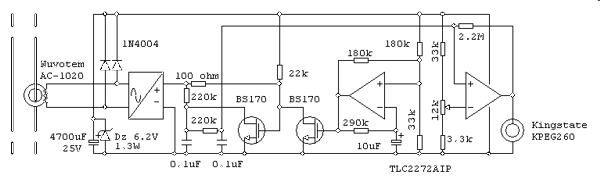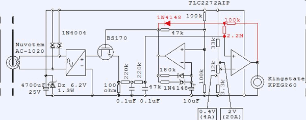 Durante questa fase il mosfet di destra si apre scollegando la resistenza da 100 ohm dal TA, Se la corrente di linea supera qualche amper, il TA fa salire la tensione sulla sua uscita che, tramite i due diodi 1N4004, va a caricare l'elettrolitico fino al valore di zener che è 6.2V.