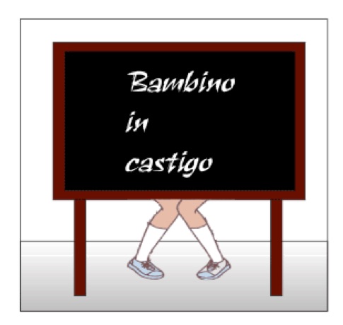 Tutti i bambini dal posto, ammutoliti, fissano le gambe del punito, che spuntano sotto la lavagna.