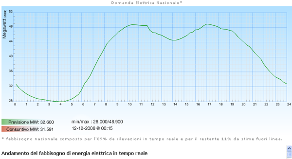 Nel sito di Terna c’è il grafico del fabbisogno reale.