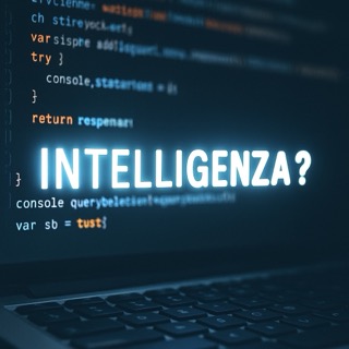 3. Una tastiera o uno schermo con linee di codice, ma in primo piano la parola “INTELLIGENZA?” con un punto interrogativo.