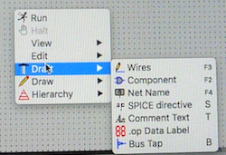 Ora dobbiamo inserire i generatori. Posizioniamo il cursore sul foglio di lavoro, premiamo il tasto destro del mouse per ottenere il menu contestuale da cui scegliamo Draft/Component