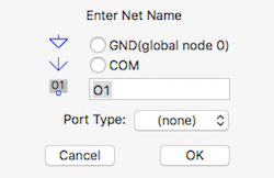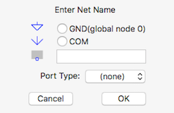 LTspice ha bisogno di conoscere qual è il punto a potenziale zero per effettuare i calcoli della simulazione. Sempre con il menù contestuale, in questo caso scegliendo draft/netname, e scegliendo GND nella successiva finestra