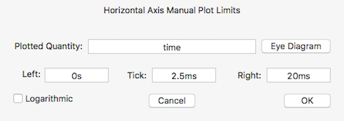 Le etichette delle scale sono automatiche, ma possono essere modificate. Avvicinando il cursore agli assi coordinati, compare un righello e cliccando con il destro del mouse si attiva una finestra di editing: valore iniziale, valore finale ed intervallo di spaziatura.