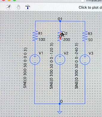 Torniamo col puntatore nello schema vuoto e spostando il cursore e cliccando, posizioniamo i tre generatori