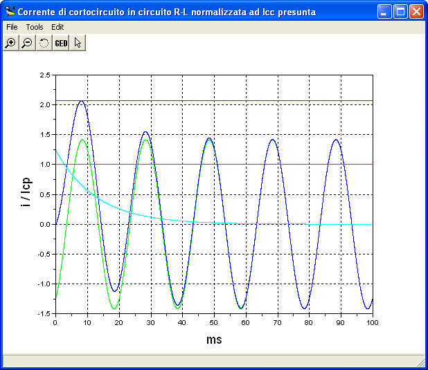 figura.figure_name="Corrente di cortocircuito in circuito R-L normalizzata ad Icc presunta"