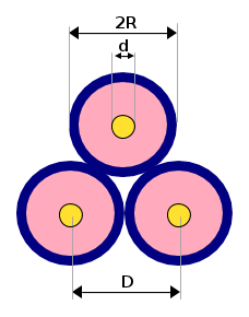 è il diametro equivalente quando una fase è suddivisa in un fascio di n conduttori ciascuno di raggio r disposti su una circonferenza di raggio R, come mostrato in figura e la terna di conduttori è simmetricamente disposta ed opportunamente trasposta (scambio regolare della posizione delle fasi)