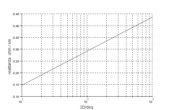 - Nota: per la reattanza a 60 Hz, basta moltiplicare i valori del grafico per 1,2
