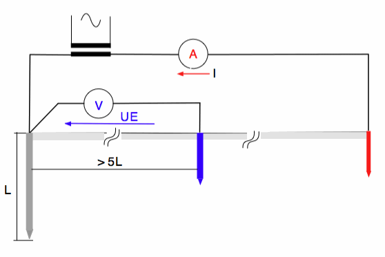Si assume come zero del potenziale quello del terreno a distanza maggiore di 5L, come detto. Il dispersore è nell'origine degli assi, O.Tra due punti qualsiasi del terreno, M ed N, si ha la tensione UMN = VM − VN. Se M ed N appartengono alla superficie e distano un metro, quella è la tensione di passo (USS(Source Step)).
