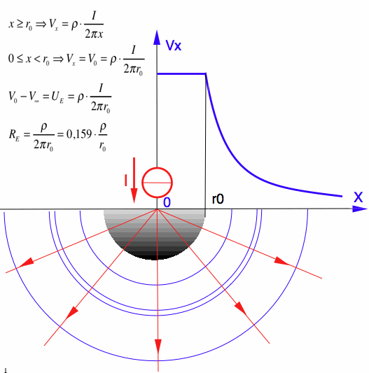 ![R_E = \frac{{U_E }}{I} = \frac{\rho }{{2\pi r_0 }} = 0,159 \cdot \frac{\rho }{{r_0 }} \quad [2]](/mediawiki/images/math/f/c/6/fc689cd824de952dd36963e8a1d8775d.png)