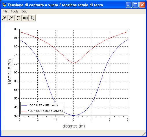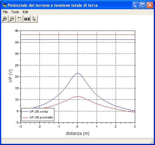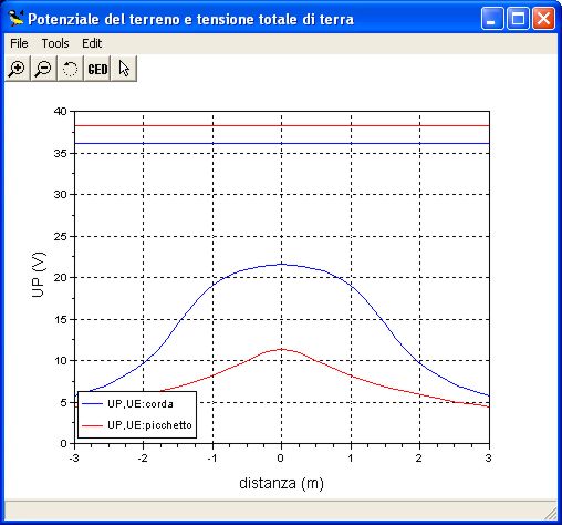 I grafici dei potenziali si riferiscono dispersori (corda e picchetto) di