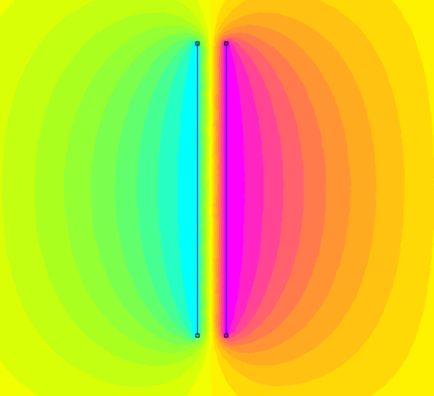 Ecco il tracciato delle superfici equipotenziali che giustificano un po' il nome attribuito a questo condensatore (che non ha applicazioni particolari se non quella di apparire in questo articolo come esercizio)