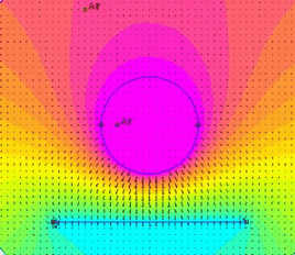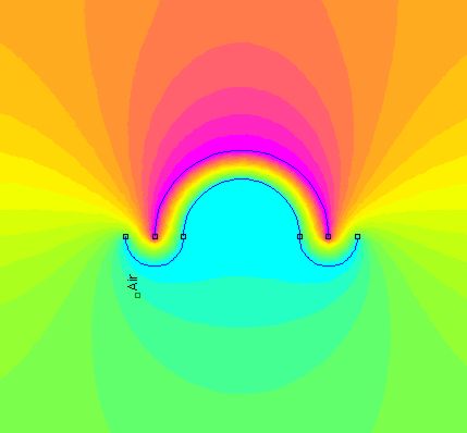 Non c'è limite alla forma delle armature. Ecco ad esempio un condensatore con armature curve che si sviluppano perpendicolarmente al piano per la profondità di un metro. Il diametro del semicerchio maggiore, che costituisce l'armatura cui è imposto il potenziale