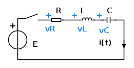 Vediamo infine un classico transitorio RLC serie alimentato da un generatore di tensione continua