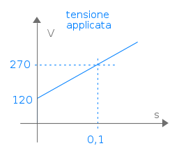 Conoscendo al corrente è immediatamente calcolabile la tensione sul carico: