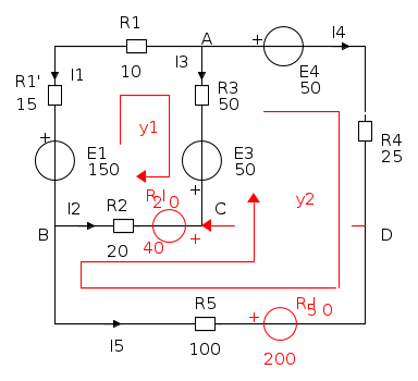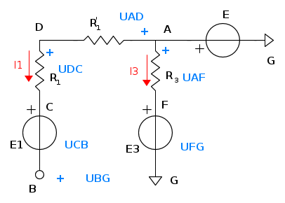 UBC = VB − VC = E1 − R1I1