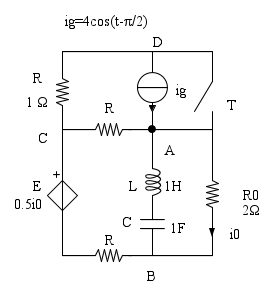 Nel circuito di figura a regime per t < 0 , il tasto T, si chiude all'istante t = 0.