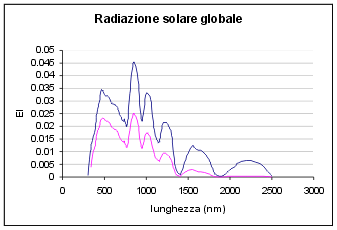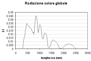 La sorgente luminosa è in questo caso la radiazione solare globalizzata, il cui andamento spettrale è mostrato in figura fs.11
