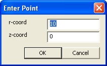 NB: può essere difficoltoso posizionare esattamente il mouse. Le coordinate dei punti si possono però scrivere da tastiera. Premendo il tasto TAB appare la finestra per immettere le coordinate r e z.