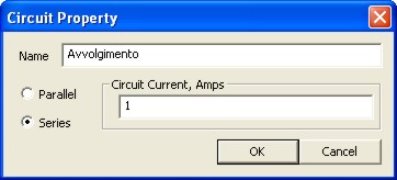 Si clicca su Add Property. Si apre una finestra nel cui campo, Name, si inserisce un nome per il circuito (Avvolgimento: ad esempio); nel campo Circuit Current, si inserisce 1, che è l'ampere che percorre le spire in serie. Eccola